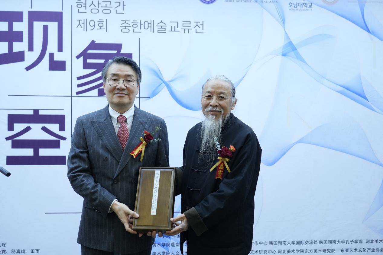韩国湖南大学校长朴相澈对第九届中韩艺术交流展的顺利开幕表示热烈祝贺,并对两校工作人员的辛勤付出表达感谢。他指出,艺术是连接情感与思想的重要语言,此次展览不仅是艺术的交汇,更是精神与空间的融合。期待未来两校继续深化合作,共同开创创意与愿景并存的未来。
