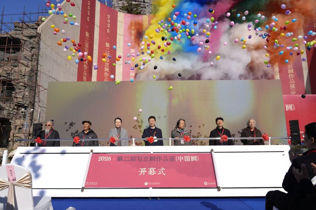 屈健、高天、刘凤泰、甄忠义、贾广健、田黎明、牛克诚七位嘉宾共同为“2025·第二届写意画作品展(中国画)”启幕。