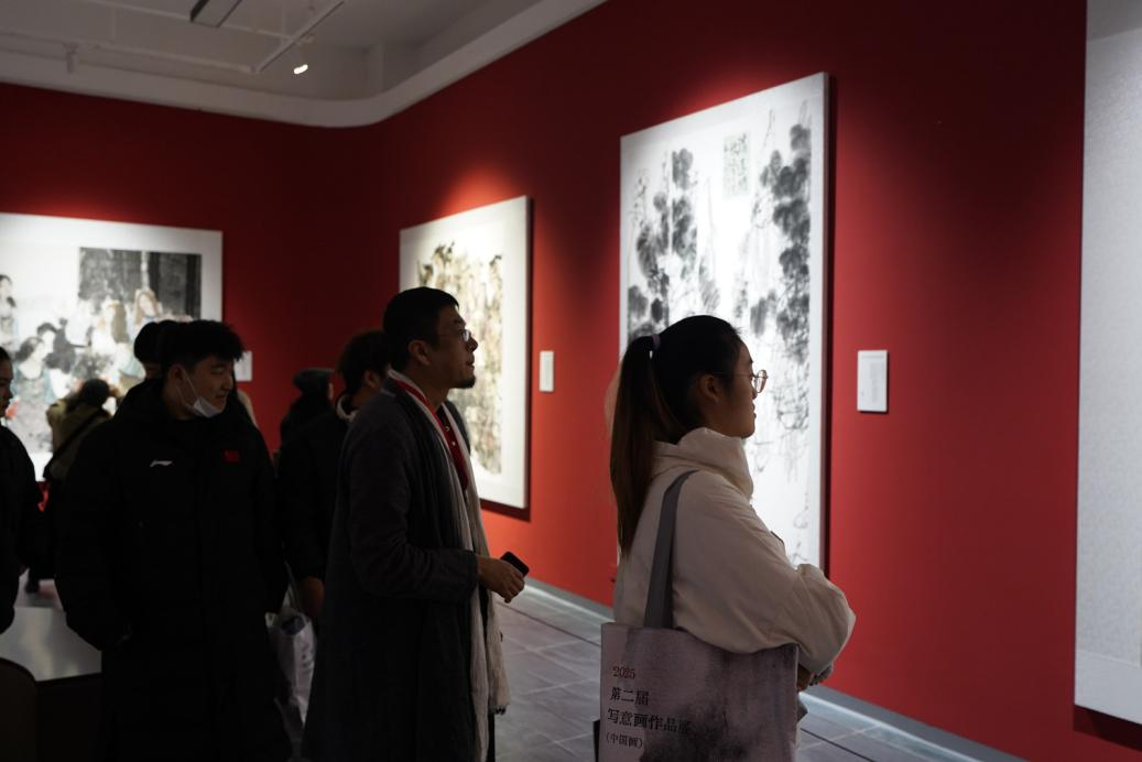 展览的呈现不仅凝聚了全国写意画艺术家的创作成果,也汇聚了高校、美术馆与学术机构的研究力量。作品题材涵盖山水、花鸟、人物等多个方向,通过富有层次的空间叙事,引导观众从哲学源流、笔墨语言与审美意蕴等多个维度,深入理解写意艺术的精神世界。从《周易》中“立象以尽意”的哲思,到荆浩所倡“真者气质俱盛”,从黄宾虹“绝似又绝不似”的美学理念,再到当代创作者对城市、自然与时代风貌的全新表达,展览清晰勾勒出写意画在传统与现代之间的脉络延展与内涵深化。