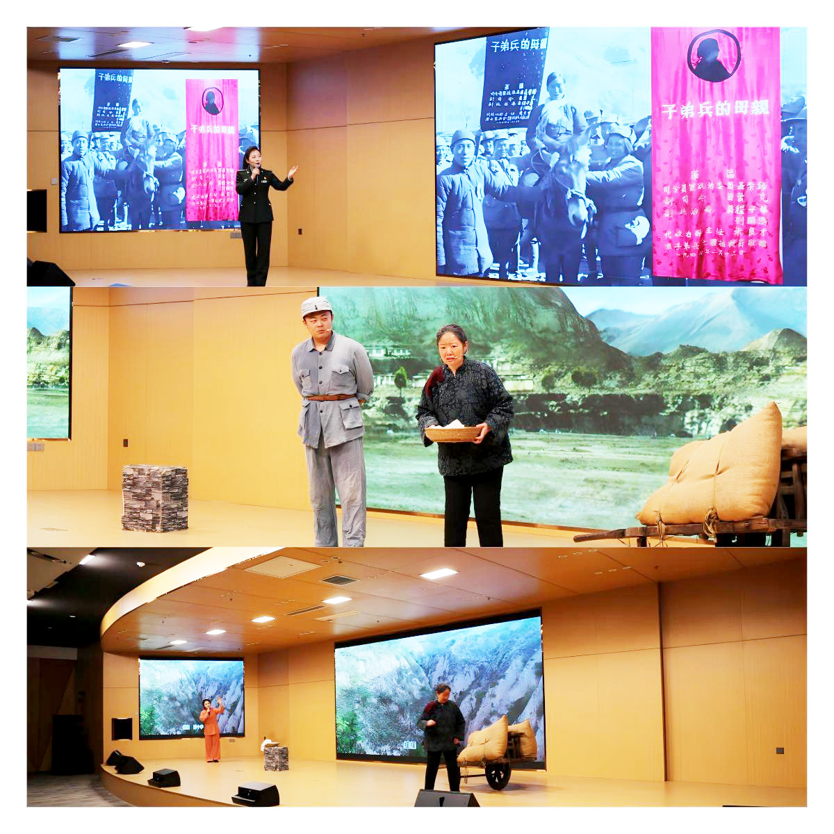 本次党课主讲为来自西柏坡纪念馆的馆员群体。党课以西柏坡“支前—抗战—解放”的红色历史为逻辑主线,馆员们以“讲述+演绎+歌唱”的生动形式,搭配“视、听、悟”相结合的沉浸式学习设计,将党史学习教育与思政育人深度融合,为在场师生献上了一堂精彩纷呈、浸润人心的专题党课。