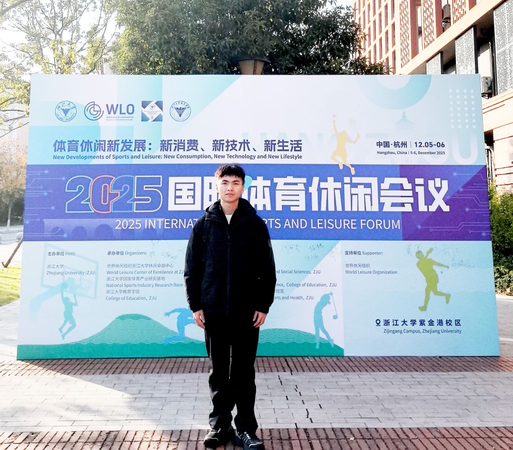 12 月 5 日至 6 日,由浙江大学主办,世界休闲组织浙江大学休闲卓越中心、浙江大学国家体育产业研究基地等单位联合支持的“2025 International Sports and Leisure Forum”在浙江大学紫金港校区成功举办。本次会议以“New Developments of Sports andLeisure:New Consumption, NewTechnology and New Lifestyle”为主题,汇聚了全球体育休闲领域的170多名专家学者与业界代表,共同探讨行业发展趋势与创新路径。我校教师陈立超应邀参会,并在专题论坛中作学术报告,展现了我校主动融入领域研究的参与热忱与探索精神。