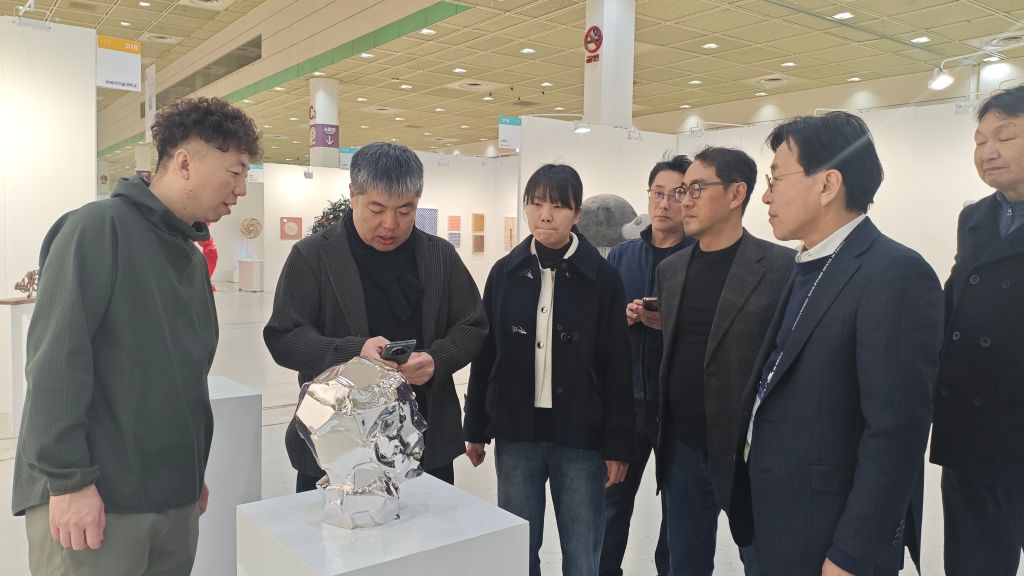 我校常务副校长张建敏带队,雕塑与公共艺术学院院长甄亚雷、副院长张华等一行赴韩参与本次活动,并携十余件雕塑作品参展。展览期间,代表团与来自韩国诚信女子大学、国民大学、韩国雕刻家协会的多位专家与教授进行了现场交流,就学科建设、公共艺术实践、展览合作及师生互访等议题交换意见,进一步拓展了校际与行业机构之间的合作空间。