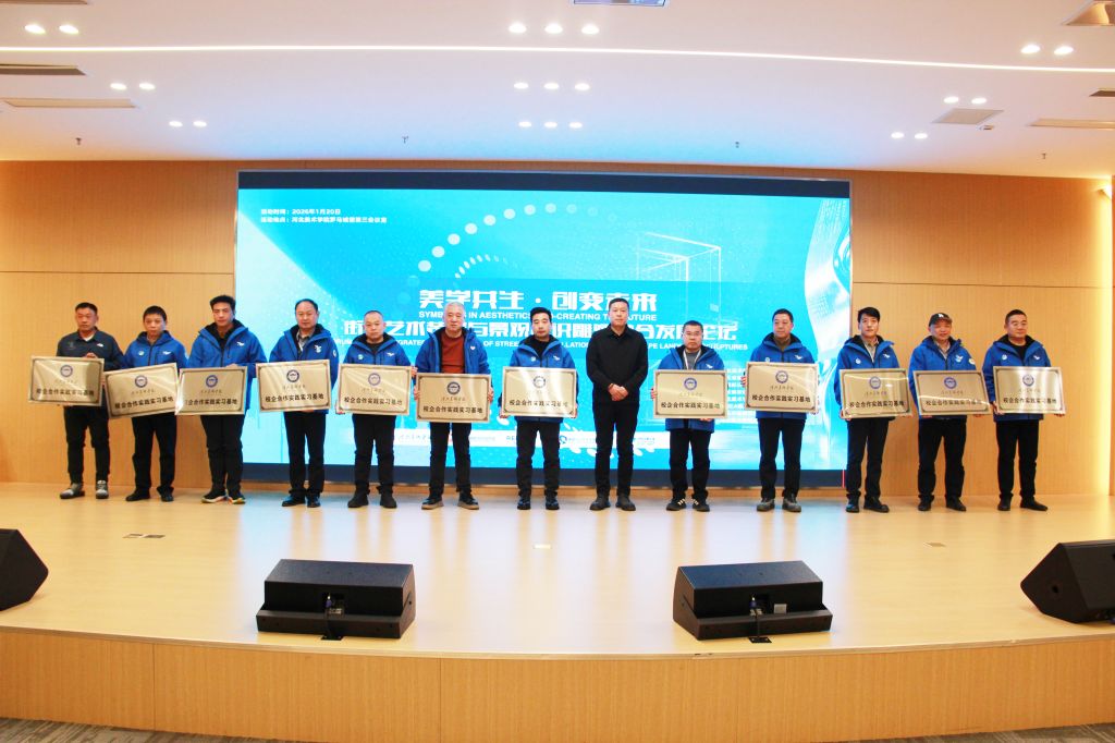 梁伟为12家企业授予校企合作实践实习基地牌匾。