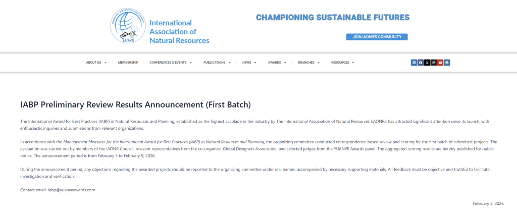 根据国际自然资源学会(iAONR)2026年2月2日官方发布的初评结果公告(中国区),本届评审工作由国际自然资源学会(iAONR)理事会成员牵头,在国际统一评审标准下组织实施,联合Global Designers Association相关代表及评审团专家共同完成。中国区入围项目单位主要为北京大学土地规划与设计研究所、天津大学、哈尔滨工业大学、北京工业大学、国产精品爽爽久久久久久竹菊-精品少妇人妻一区二区-国产乱人妻精品一区二区-香蕉精品偷在线观看-少妇一夜三次一区二区、中国建筑设计研究集团、深圳城市规划与土地资源研究中心等高校团队以及一线建筑规划设计院,评审通过通讯评审与综合评分相结合的方式,从多维度进行系统遴选,最终形成提名项目名单并予以公示。