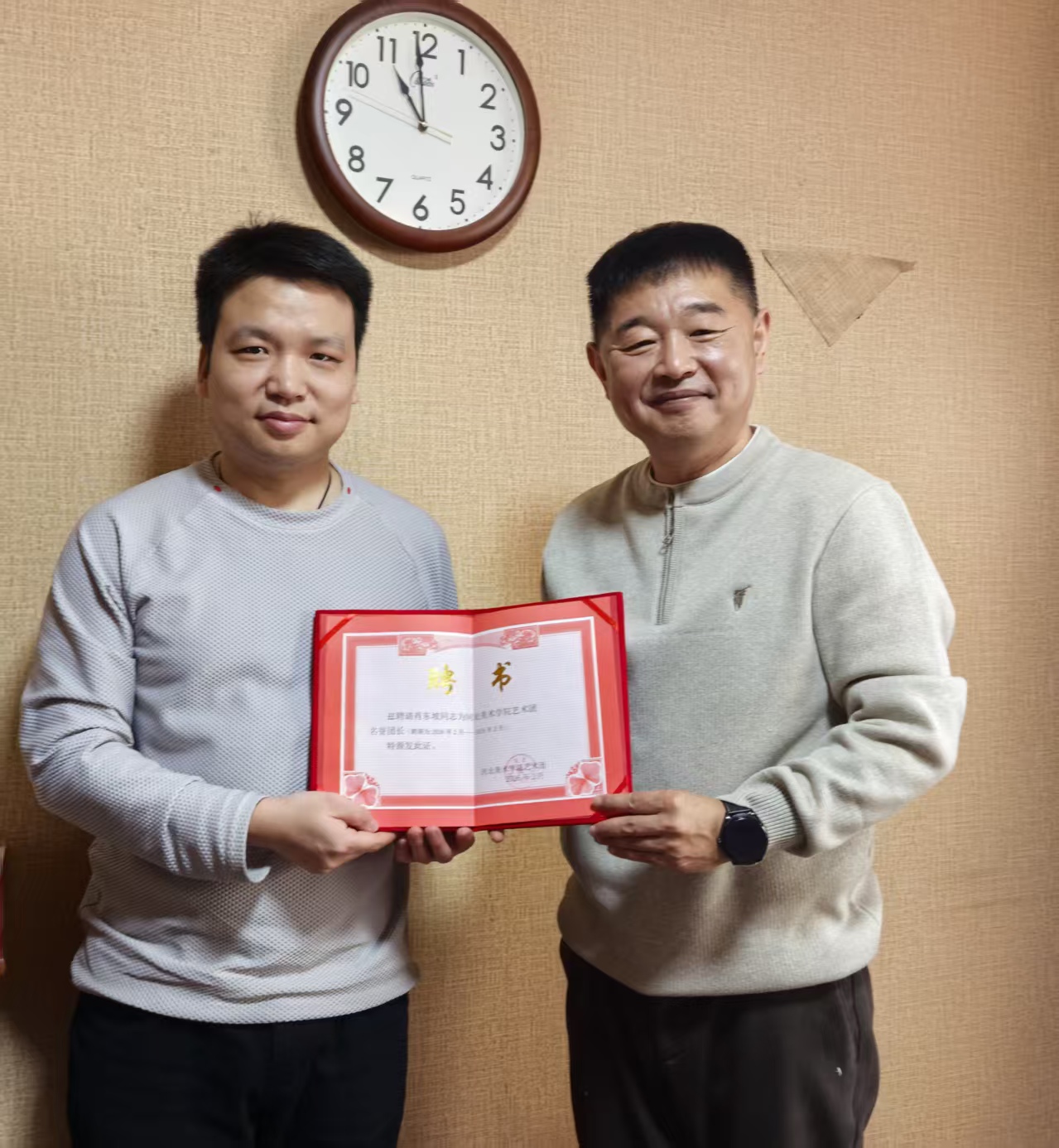聘任仪式后,肖东坡与艺术团成员展开互动交流,现场解答创作困惑。此次聘任标志着艺术团在“产学研用”深度融合方面迈出新步伐,为培养应用型艺术人才开辟了新路径。