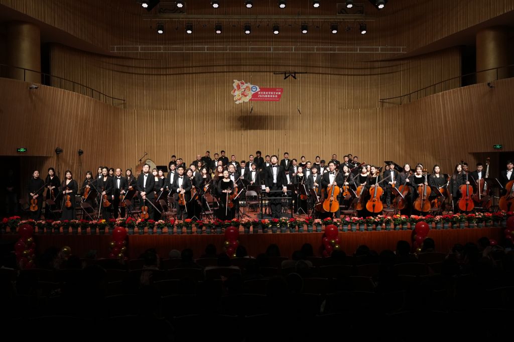 音乐会压轴上演民族管弦乐组曲《太阳颂》,该作品由作曲家王丹红创作,取材巴渝民间音乐素材,包含踏江、挑山、思念、太阳颂四个乐章,以磅礴气势、浓郁地域风韵与深邃情感内涵,赞颂劳动人民的坚韧力量与昂扬精神,讴歌祖国山河壮丽、时代蒸蒸日上。全曲气势恢宏、意蕴深远,将整场音乐会的情绪推向高潮,以激昂颂礼为音乐会画上圆满句号。