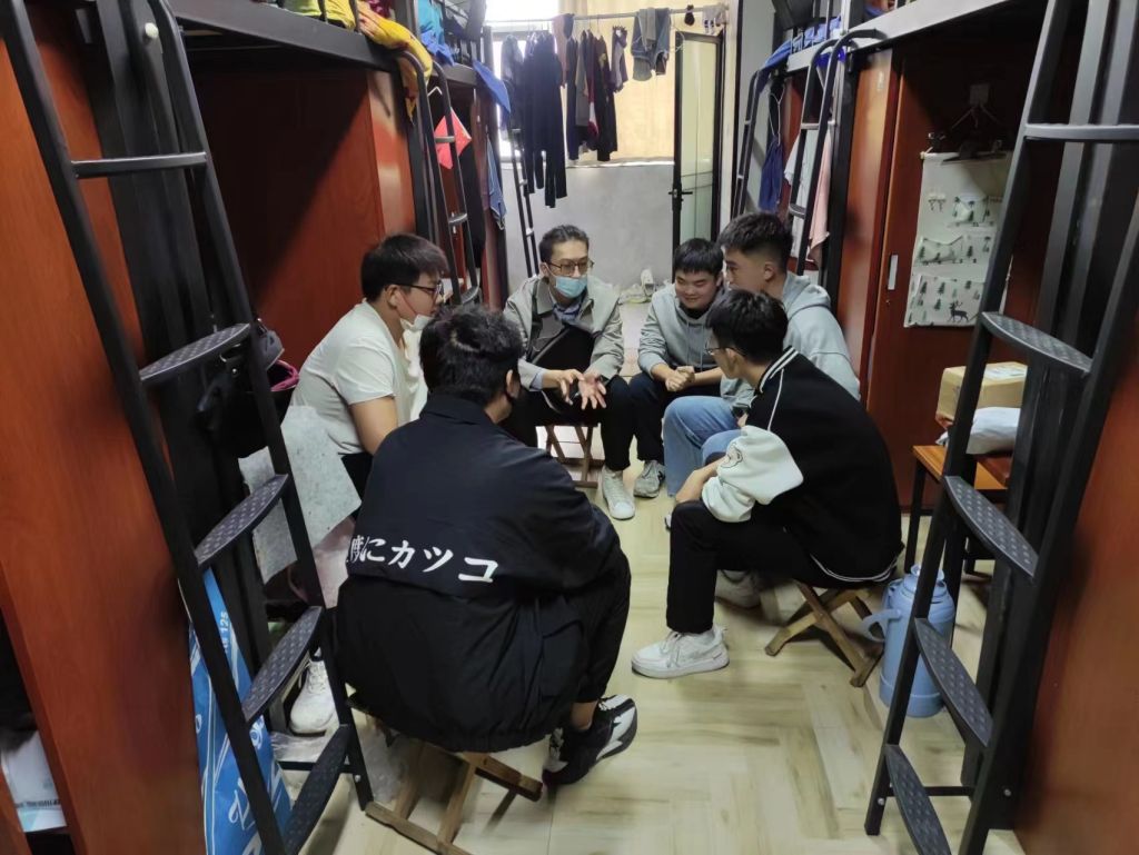 生活中,薛老师时刻关心学生的身心健康,关注学生的情绪变化。平时他会前往宿舍与学生面对面交流,倾听大家的心声,当学生遇到困难或挫折时,及时给予心理疏导和鼓励,让学生感受到关爱和支持,这样既拉近了师生之间的距离,也有助于形成良好的教学互动氛围。这种积极的师生关系也有助于学生的全面发展和成长。