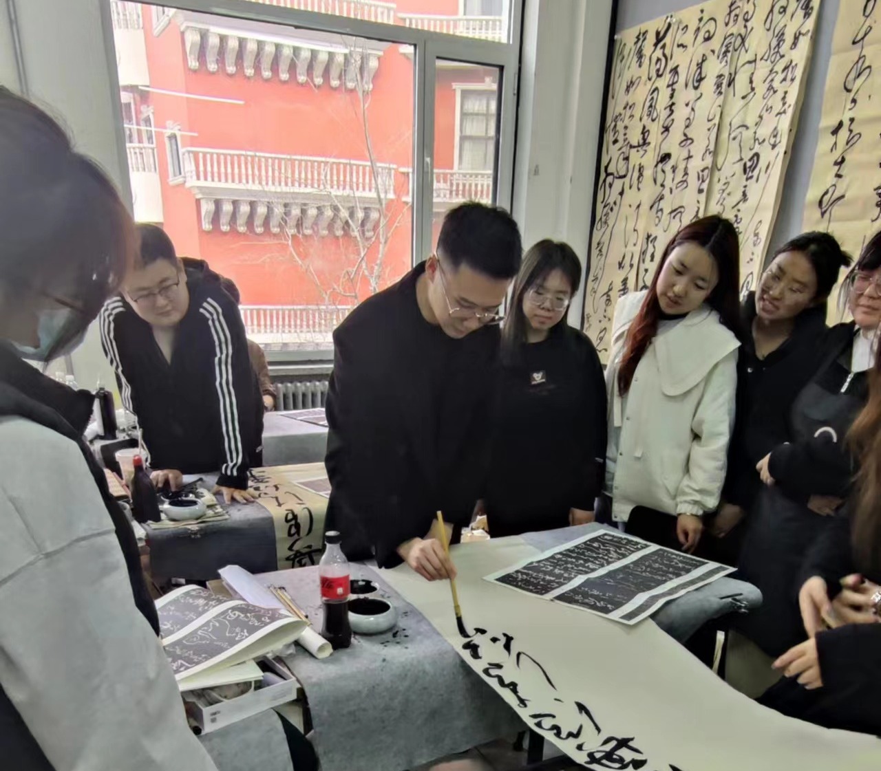 成老师认为书法学习是持续性的,需要不断感悟。每个阶段的审美认识都不同,水平的高低首先取决于审美能力。审美养成需要日常对自然万物的感悟和积累,学书不仅是练习技法,更是体会其中的“道”。基于这一观点,成老师一直希望带领学生走出教室,去博物馆亲身体验古人的书法名迹。2018年国庆期间,他组织学生自愿参加山西青铜博物馆的求学之旅,吸引了众多学生参与。