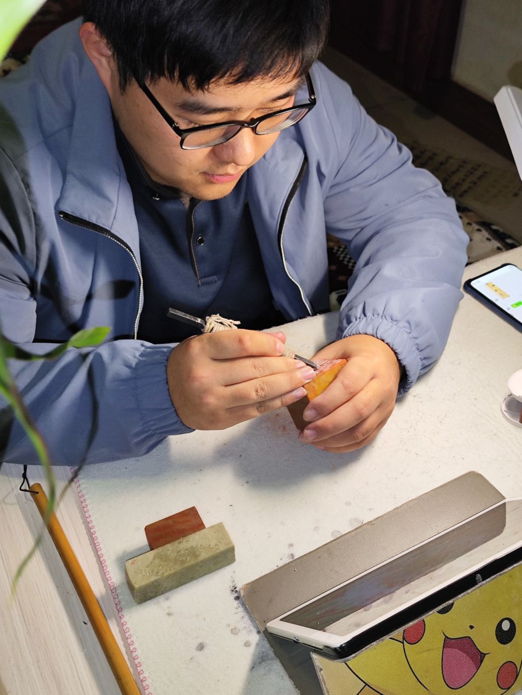 翟佳旺与篆刻的缘分始于儿时的一次偶然邂逅。在一次书画展览中,一方方精美的篆刻印章深深吸引了他,古朴典雅的篆字仿佛带着历史的温度,种下了他对篆刻的热爱。如今,他已将这份热爱转化为专业追求,凭借扎实的技艺和对传统的深刻理解,逐渐在篆刻界崭露头角。
