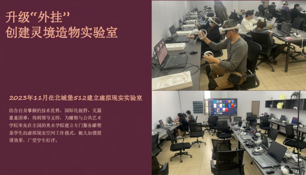 图六:赵勇老师将艺术与科技结合,克服技术壁垒,创建以虚拟现实技术服务造型教学的“灵境造物实验室”,该实验室得到学生广泛好评。