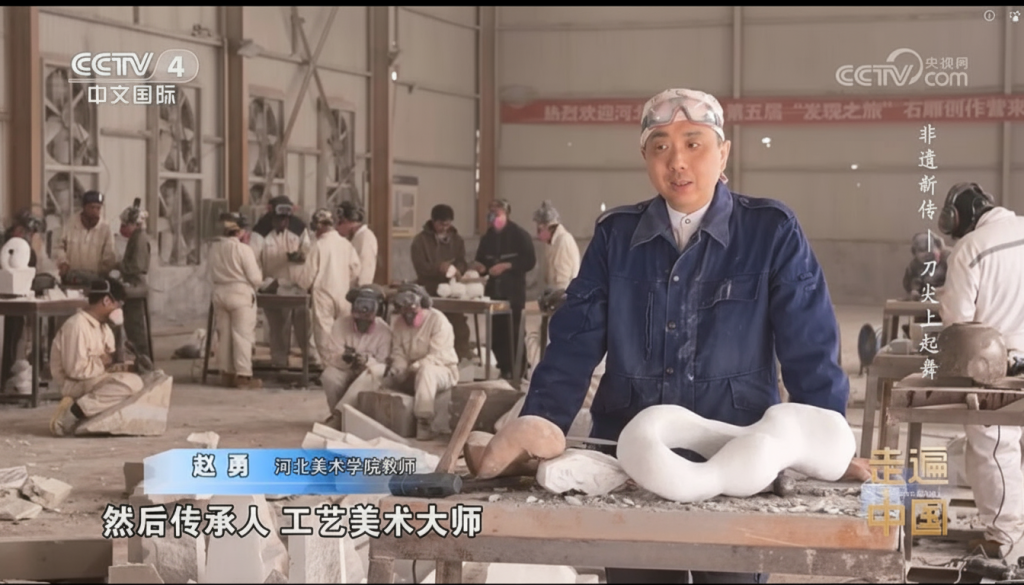 图一:“发现之旅石雕创作营”被中央电视台中文国际频道报道,赵勇老师接受央视采访。