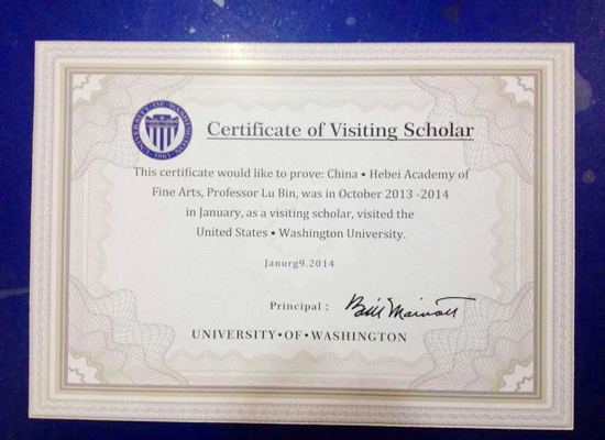 应美国全美雕塑家协会、全美油画家协会、美国华盛顿大学、美国景观设计师协会的邀请,2013年10月13日——2014年1月14日,我校教师鲁斌与来自全国各地的二十九位雕塑家、设计师一起赴美国进行为期三个月的艺术考察与学术交流。此次活动由中国国家画院雕塑院和中国城市规划协会组织,考察团先后考察了芝加哥、纽约、华盛顿、洛杉矶等八座城市雕塑和城市景观作品,参观了华盛顿大学艺术学院、哈佛大学设计学院、芝加哥艺术学院、耶鲁大学等五所大学及若干博物馆、艺术画廊,同时与当地艺术家、艺术策展人进行了广泛交流。我校鲁斌老师获得了美国华盛顿大学颁发的访问学者证书。