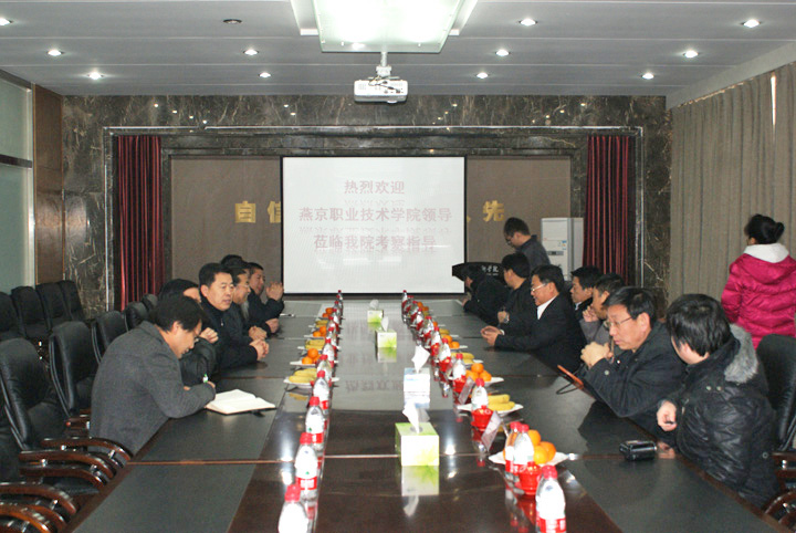 2012年2月27日下午,廊坊燕京职业技术学院院长郭洪博一行来我校访问,我校校长甄忠义、党委书记吴书元等校领导及有关部门负责同志陪同访问。