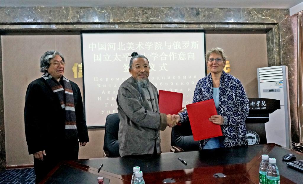 2015年12月11日,俄罗斯太平洋大学艺术、广告与设计学院院长娜塔莎教授一行莅临我校考察访问,并签订一系列国际教育合作协议。