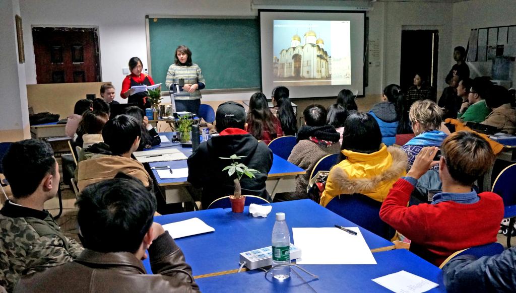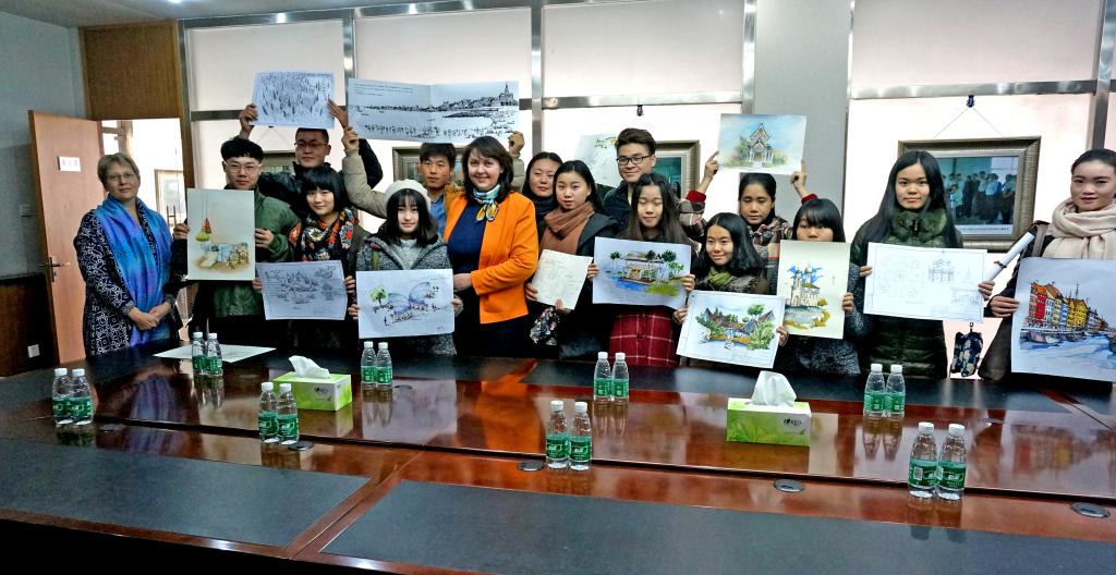 访问期间,随访的叶琳娜教授为我校师生做 “现代文化背景下的木质结构建筑”的精彩讲座,并与师生进行艺术交流。