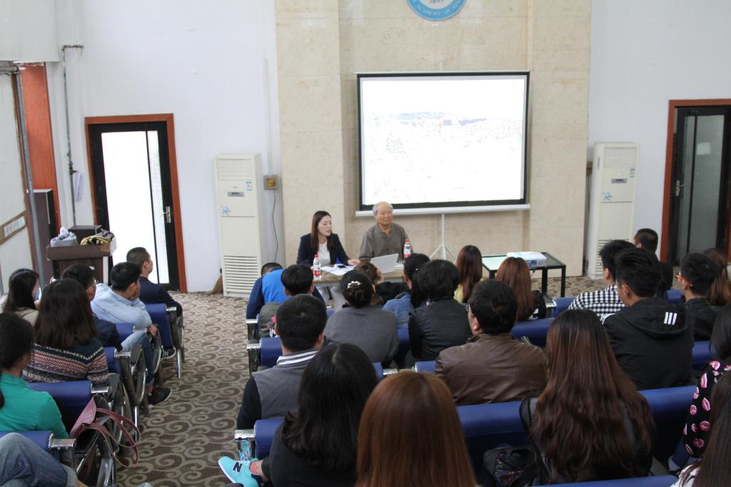 10月14日,成范永苑长应邀在我校北报告厅做专业讲座《我的草木人生》,国际教育学院、城市设计学院、环境艺术学院的众多师生慕名而来,挤满了整个报告厅。成苑长循循善诱、侃侃而谈,结合自身学习经验与工作经历,与在场师生分享了景观园林方面及艺术设计方面的诸多体会。讲座结束后,成苑长与师生进行了亲切交流,我校师生获益良多。