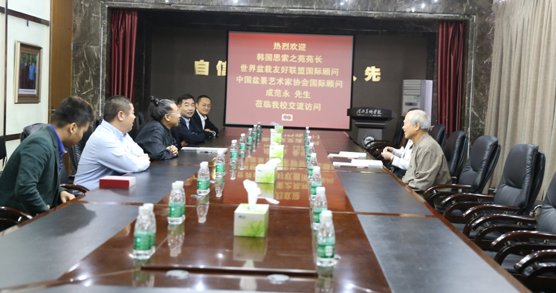2015年10月13日,韩国思索之苑苑长、世界盆栽友好联盟国际顾问、济州特别自治道厅对华宣传大使、中国盆景艺术家协会国际顾问成范永先生莅临我校参观访问。