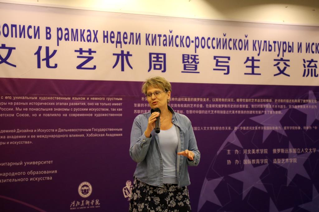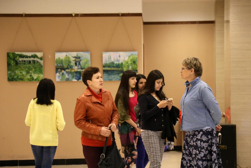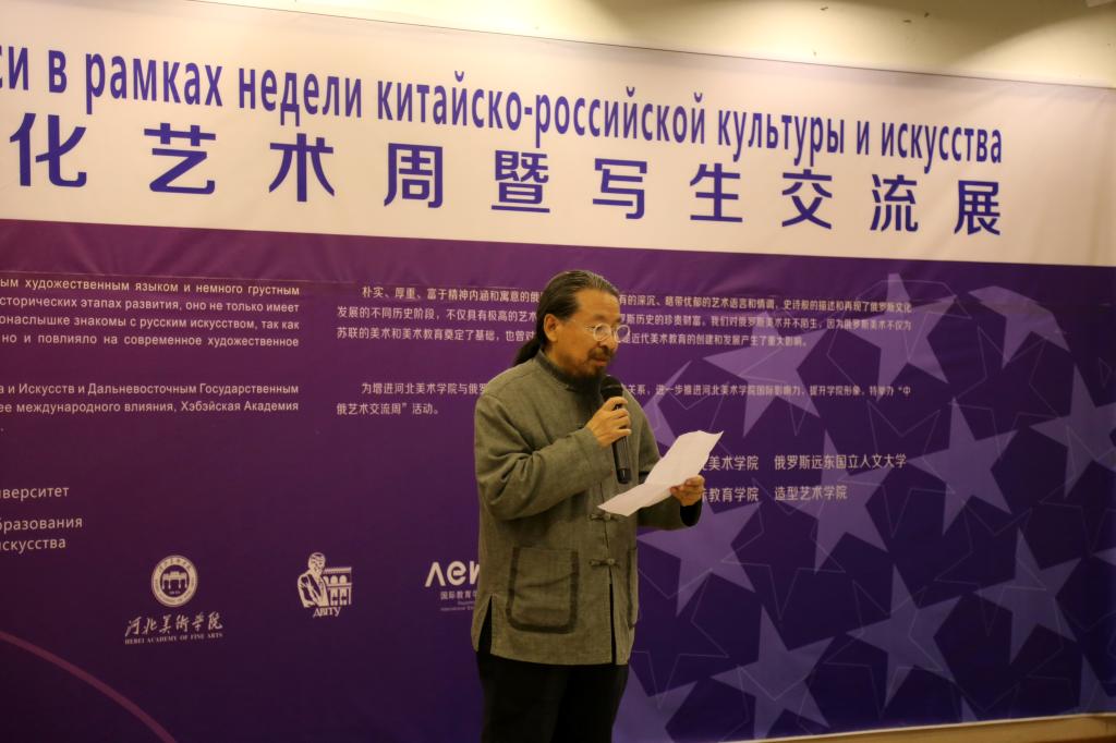 5月10日下午2:30,中俄文化艺术交流周写生展览准在新综合楼第二展厅举办,我校校长甄忠义、俄方院长娜塔莉亚、国际艺术教育协会主席罗莫夫·斯坦尼斯拉夫·彼得洛维奇,国际教育学院院长贾智永、造型学院院长姜兴达、教务处处长张立阳、国际教育学院副院长兰新成等人出席了展览开幕式,甄校长亲切致辞,称这次画展是中俄艺术交流周结出的丰硕果实,我校与俄罗斯远东国立人文大学的交流会有进一步的发展。俄方领导称深切感受到了我校师生的热情幽默与艺术才华,愿双方友谊地久天长。画展在师生中引起强烈反响,中俄双方师生均驻足在画作前探讨、品评,展现了浓烈的艺术交流氛围。