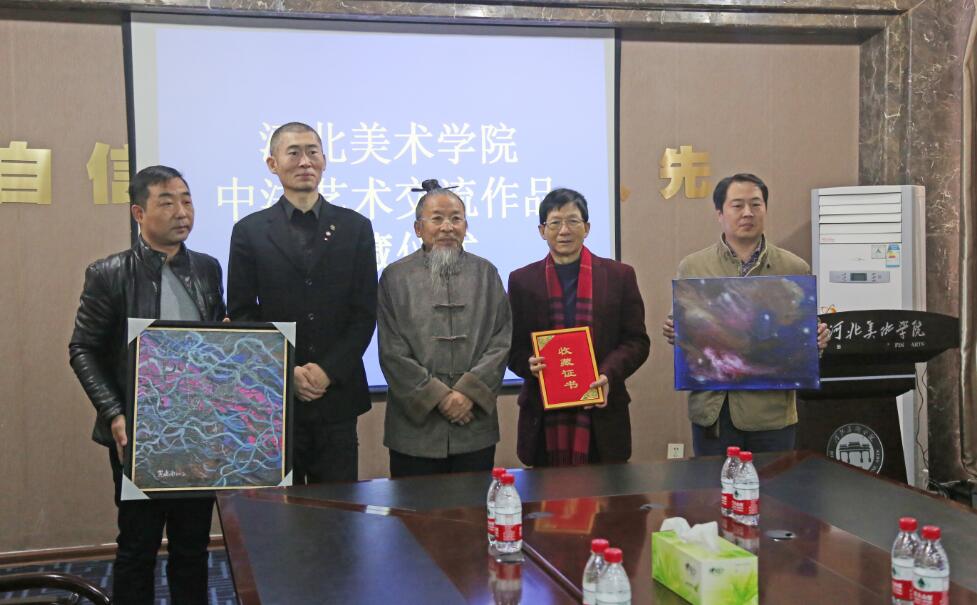 7日上午,黄建南和艺术家孙庆波先生分别为我校捐赠作品《脉》和《太空系列》,甄忠义校长为其颁发收藏证书。艺术文化交流活动期间,法方艺术家的作品在我校各展厅展出。