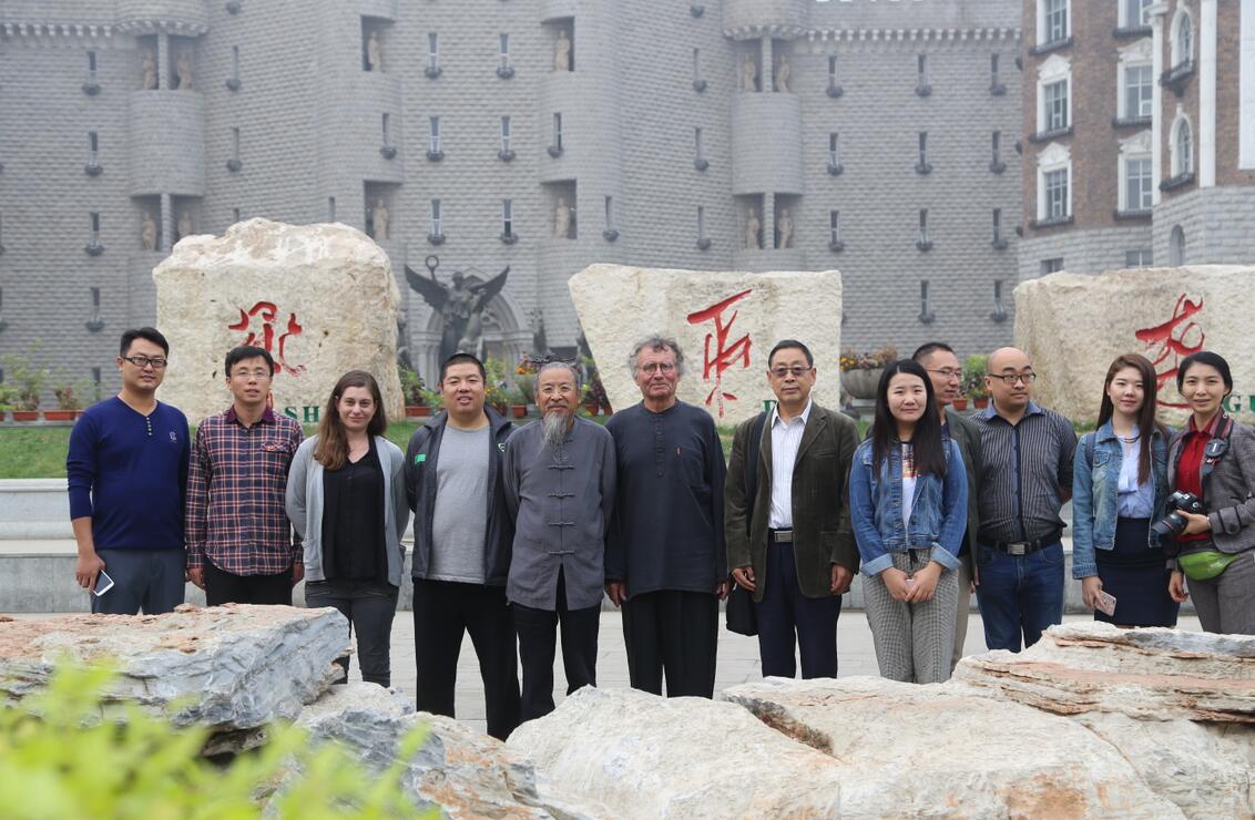 在校领导陪同下,来访嘉宾参观了我校校园。沃尔法特先生对甄校长的作品和藏品极为赞赏,对我校北区校园和南区城堡景观给予了高度评价。