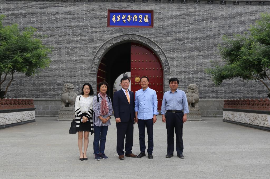 国际教育学院兰院长陪同朱院长一行参观南北校区,介绍我校办学情况及建筑特色。