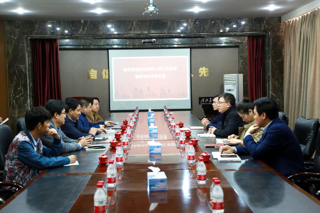 2018年3月28日上午,河北师范大学汇华学院党委书记徐国强一行4人来我校考察交流。我校党委副书记、副校长孙志强及相关处室负责人在综合楼会议室接待来宾。