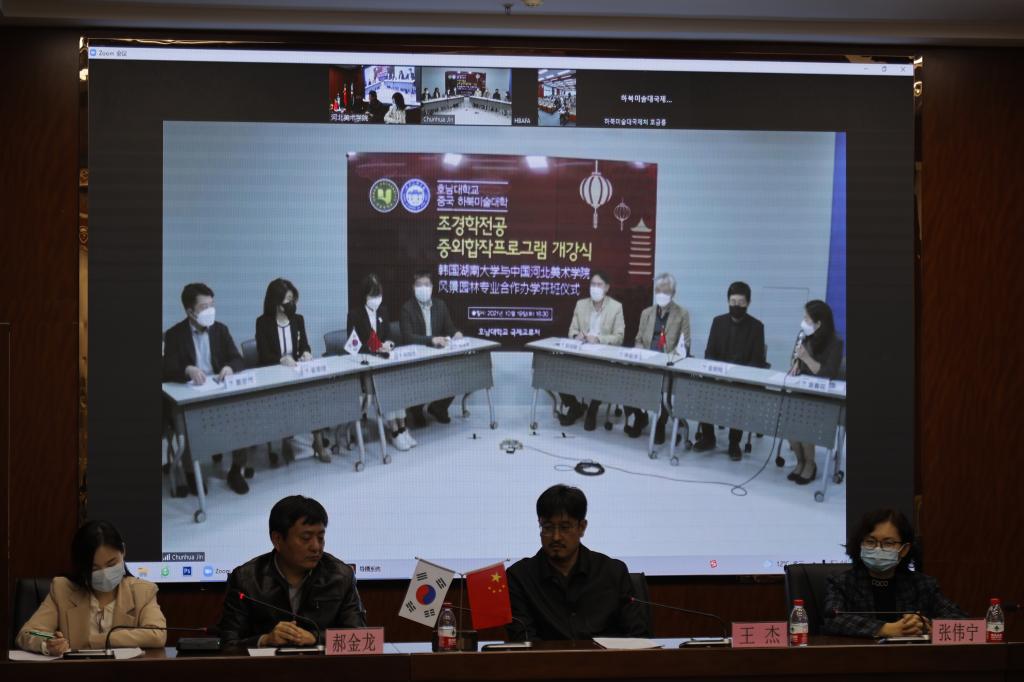 10月19日下午3时30分,我校举行风景园林专业中外合作办学项目开班仪式,国产精品爽爽久久久久久竹菊-精品少妇人妻一区二区-国产乱人妻精品一区二区-香蕉精品偷在线观看-少妇一夜三次一区二区常务副校长张建敏,建筑与艺术设计学院院长王杰,国际教育学院副院长、国际交流与合作中心副主任郝金龙,韩国湖南大学国际处处长孙婉怡、副处长金春花,造景系主任赵成敏教授与4名教授教师,以及2020、2021两届风景园林专业32名学生参加了此次开班仪式。仪式由郝金龙主持,通过ZOOM会议进行中韩两校连线。