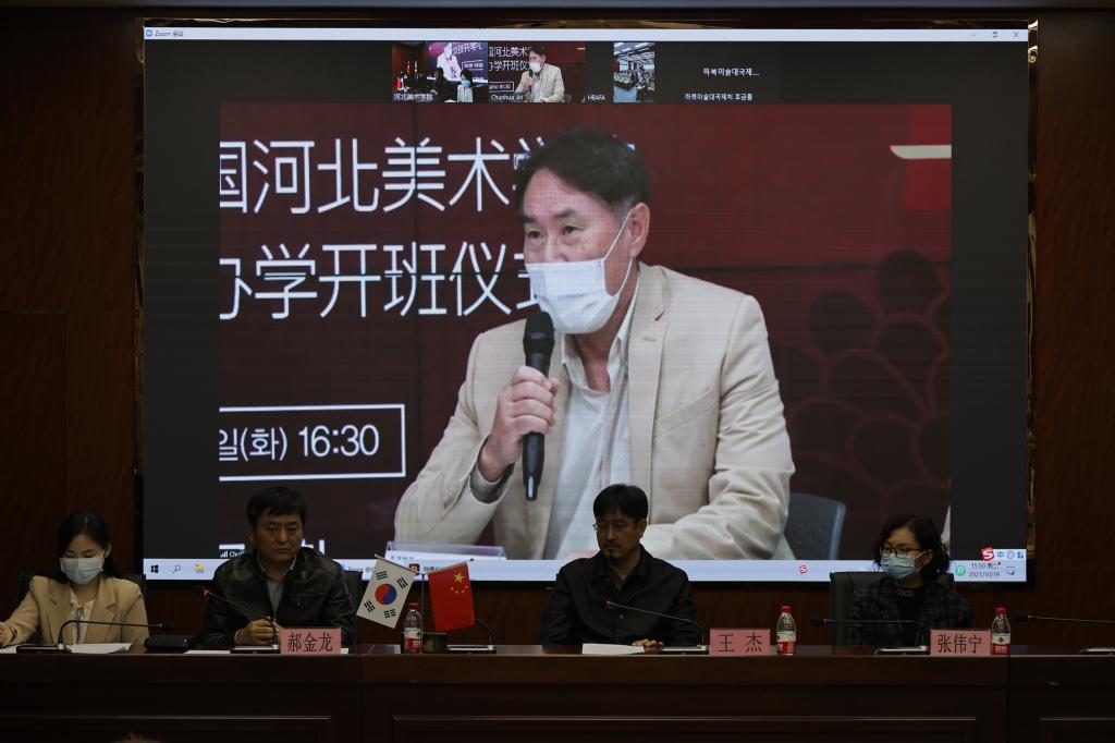 王杰院长在发言中介绍建筑与艺术设计学院师资团队、专业构成、教学设施等概况,提到韩国湖南大学风景园林专业优势,鼓励学生在两校精心培育下努力奋斗。