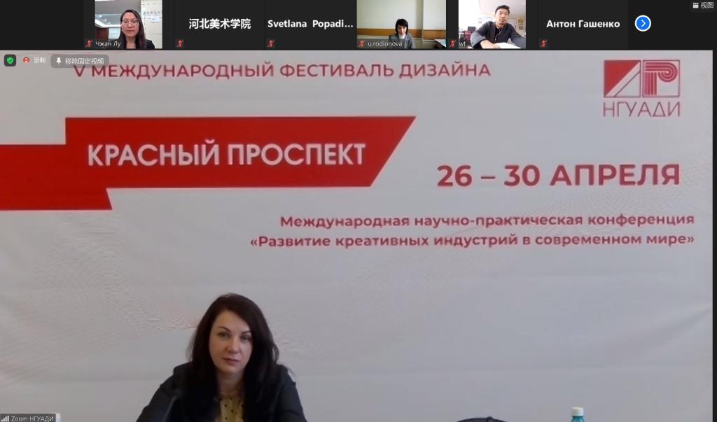 Рязанцева Инна Вячеславовна首先作了《中俄在艺术领域的合作》主题报告。甄忠义发表讲话,对近期由新西伯利亚国立建筑艺术大学举办的第五届“红色大街”国际艺术节表示祝贺。他指出,我校师生积极踊跃参加此次国际设计节,提交了一百多件参赛作品。张建敏在发言中表示,希望与世界优秀的艺术类大学建立硕士联合培养、师生交流等多方面的深入合作。我校教师代表张露、外教代表斯维达分别在会上发表了《为艺术类高校学生建立文化艺术交流基地的必要性》《中国美术和设计专业本科生的一些影射分析》报告。
