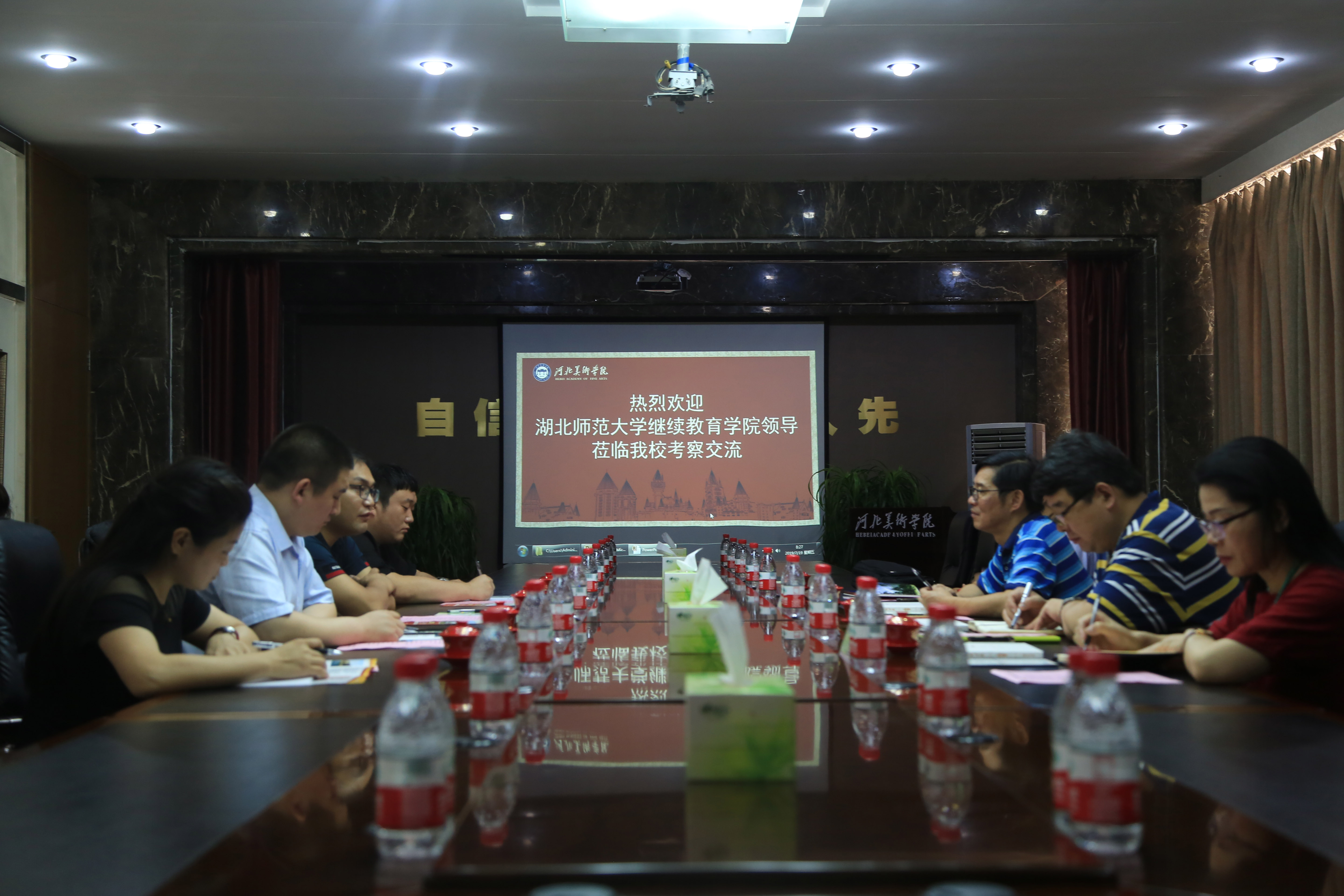 2019年7月19日,湖北师范大学继续教育学院党总支书记石教磊、继续教育学院党总支副书记涂瑜等一行4人到我校进行交流考察。我校纪委书记、副校长甄心恒,校长办公室主任麻立峰,继续教育中心主任王杨等接待来宾。
