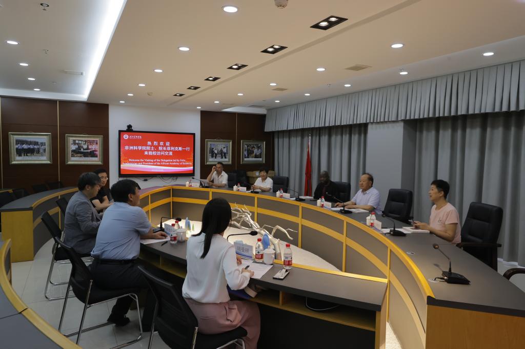 6月4日上午,非洲科学院院士、院长Felix Dapare Dakota一行来我校访问交流,我校院士工作站站长、非洲科学院院士贾银锁陪同,常务副校长张建敏、党政办公室主任周哲、国际交流与合作中心副主任郝金龙在综合楼318会议室接待来宾。