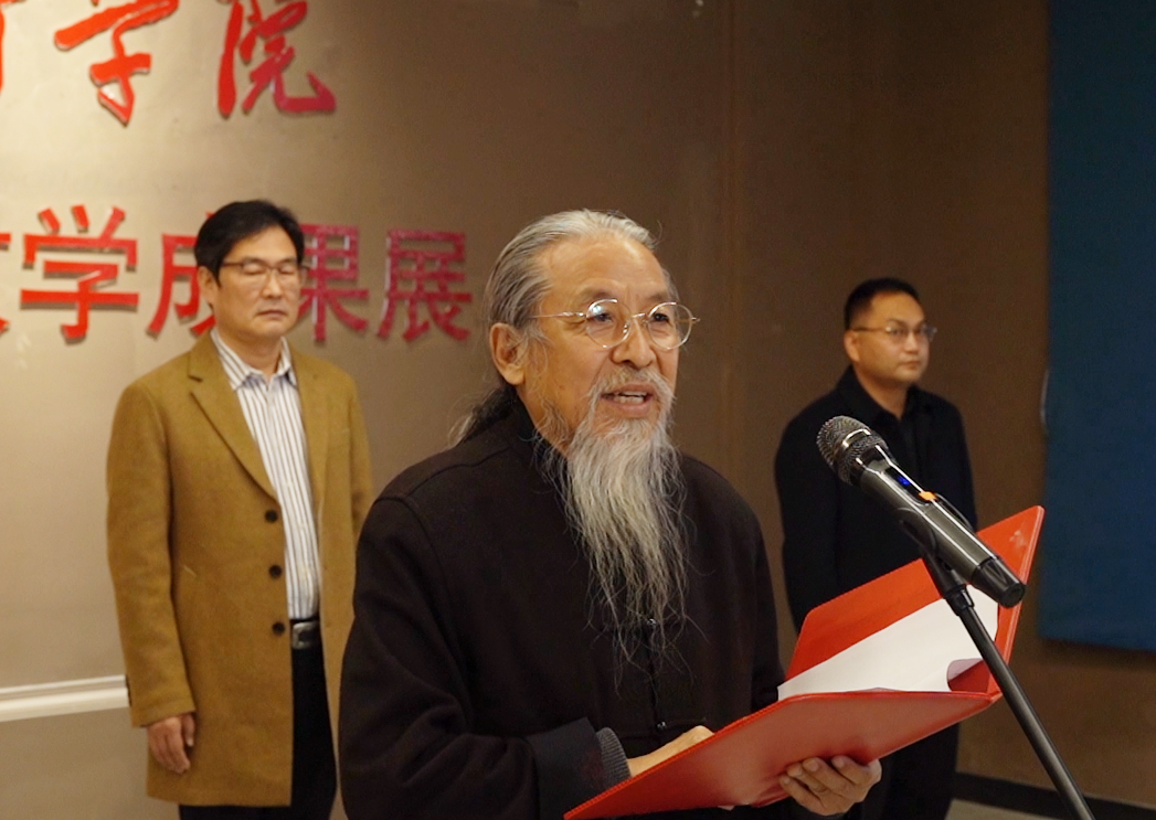 副校长张子言发表讲话,他指出此次成果展共展出包括美术创作、书法、设计、动画、影视等多种类型的作品2795件,种类丰富,形式多样,内容积极向上,部分作品在诸多国家各级各类展赛中获奖,是我校教学质量的一种展示,也是广大师生在教学水平和业务能力的交流活动,希望大家能够认真观摩,取长补短,为我校教学质量再上新台阶贡献自己的力量。